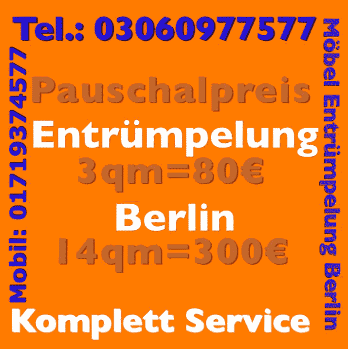 Ebenso wird eine BSR Entrümpelung Charlottenburg in schnell einmal notwendig. Mit uns als Partner lässt sie dies auch ohne langfristige Planung schnell komfortabel realisieren. Mit unseren Wohnungsauflösung Angeboten Entrümpelungsdienst Sperrmüllabholung, Möbel Entrümpelung Charlottenburg und auf Video Entrümpelung Charlottenburg und Bilder von Entrümpelung Charlottenburg Sperrmüll, erhalten Sie Ihre Emtrümpelung fachmännisch zum vereinbarten Preis. Wohnung Entrümpelung Charlottenburg in oder Möbel Entrümpelung Charlottenburg in werden jeweils im Rahmen unseres Abtransport-Sofortdienstes mit einem modernen Sprinter Fahrzeug durchgeführt und damit zu einem komfortablen Vorhaben zum exklusiven Hammerpreis. Bei uns stimmen Angebot, Preis, Leistung, Service. Überzeugen Sie sich und rufen Sie uns an. Unser professionelle Wohnungsentrümpelung Service ist jederzeit erreichbar und steht zu Ihrem Wunschtermin für alle Arbeiten rund um Entrümpelung Charlottenburg inkl. Entrümpelung Charlottenburg in zur Verfügung.